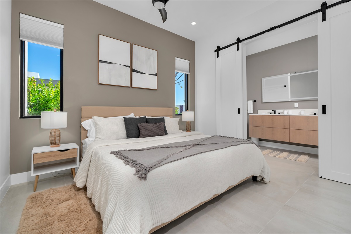 Each of the spacious bedrooms have a king bed, ample closet space and on suite bathrooms. The bedrooms are thoughtfully designed to be a serene sanctuary, featuring plush bedding and offer both style and privacy.
